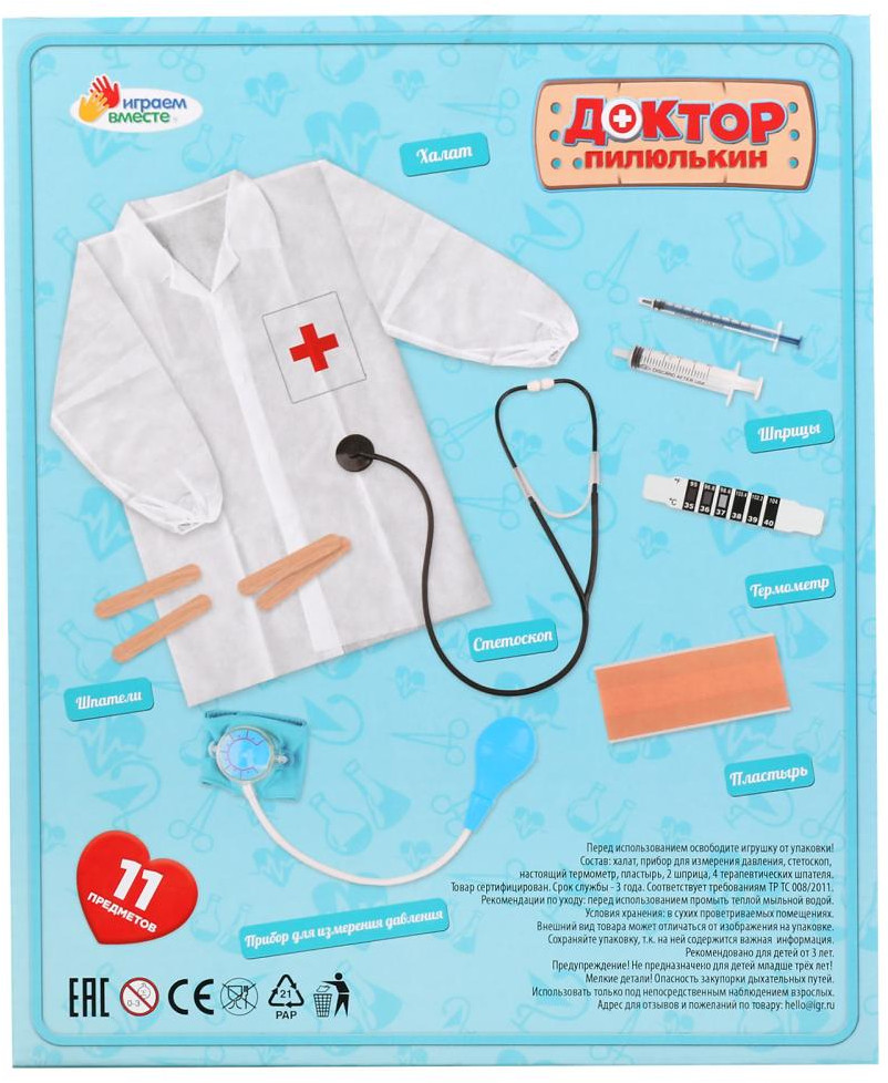 Играем вместе Набор игровой «Доктор пилюлькин»В данный момент этот товар отсутствует в продаже. Возможно, у нас найдется аналогичный или похожий товар здесь. Набор доктора «Доктор Пилюлькин» ТМ «Играем вместе» станет отличным подарком для ребёнка. В этом наборе есть всё, что может понадобиться юному доктору. Играя с занимательным набором, ребёнок придумает множество новых игровых сюжетов. |
