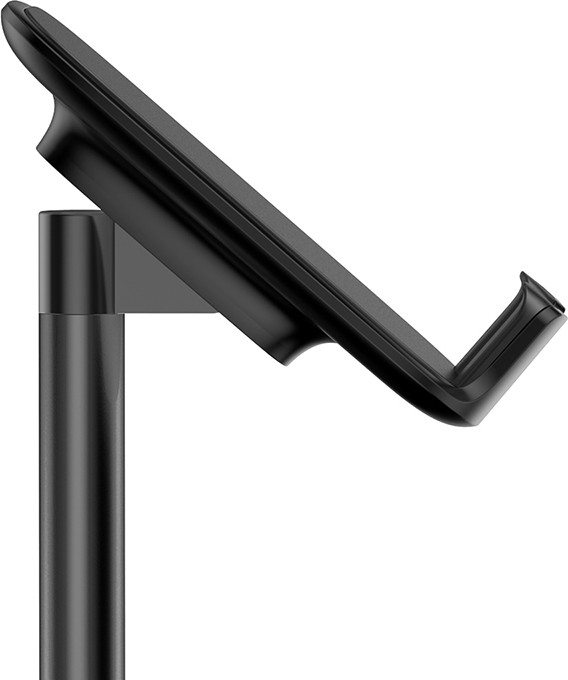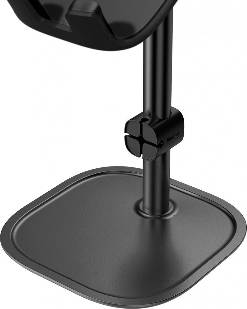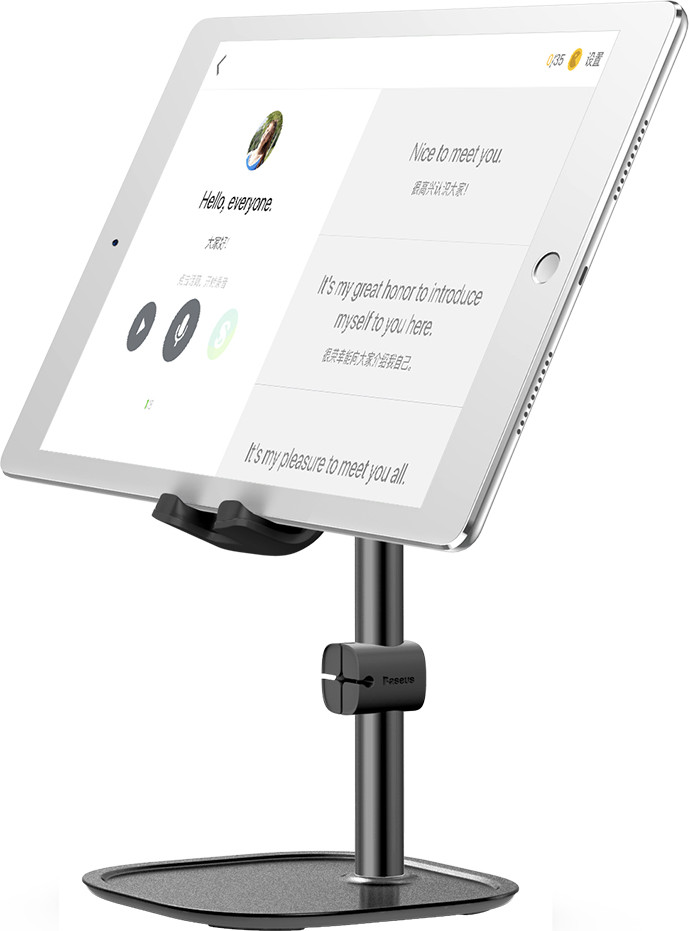 Держатель «Baseus Literary Youth Desktop Bracket» выполнен из прочного алюминия, а устойчивость конструкции обеспечена широкой платформой, которая также служит для хранения различных аксессуаров. В днище держателя использованы резиновые накладки, благодаря чему он не оставляет следов на покрытии стола или тумбы.