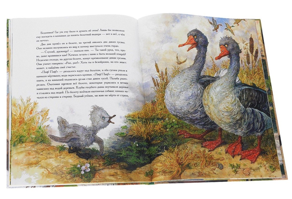 Гадкий утенок- это одна из самых замечательных сказок Андерсена. Почти все его произведения люблю, но есть очень жестокие, например, "Огниво". И когда знакомила своего сына с "Огнивом", была в смятении, ну очень сомнительные моменты там присутствуют, приходилось отвлекаться от чтения и пояснять, что не есть хорошо. А Гадкий утенок создан пробудить и расшевелить все самое светлое и доброе в сердцах юных читателей. Антон Ломаев бесподобно передал атмосферу произведения. И хотя в нашей библиотеке уже есть утенок в исполнении Ники Гольц и тоже очень хорош собою, мимо этого пройти не смогла.