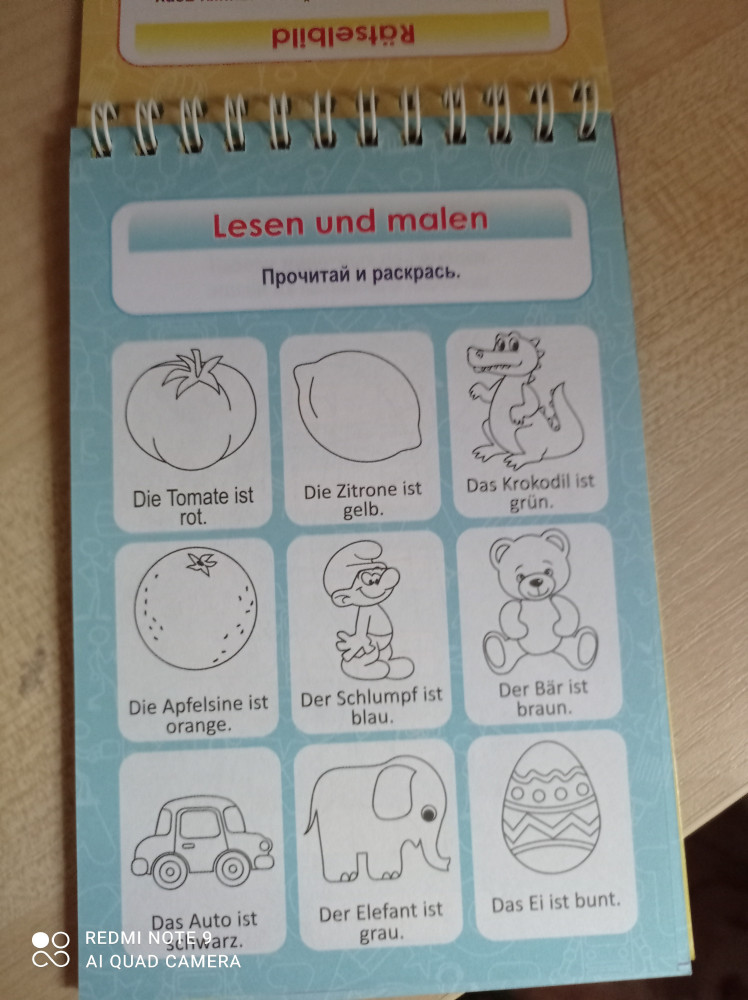 Блокнот очень понравился, он подойдёт школьникам и начинающим взрослым, весело и интересно учишь азы немецкого языка и ещё и стресс снимаешь попутно