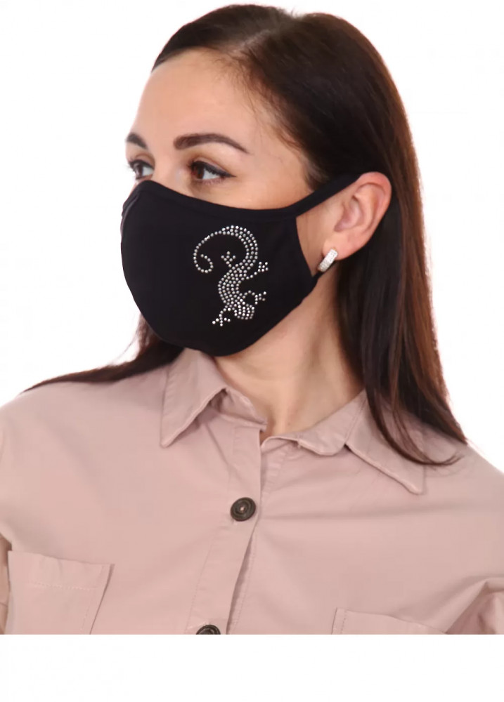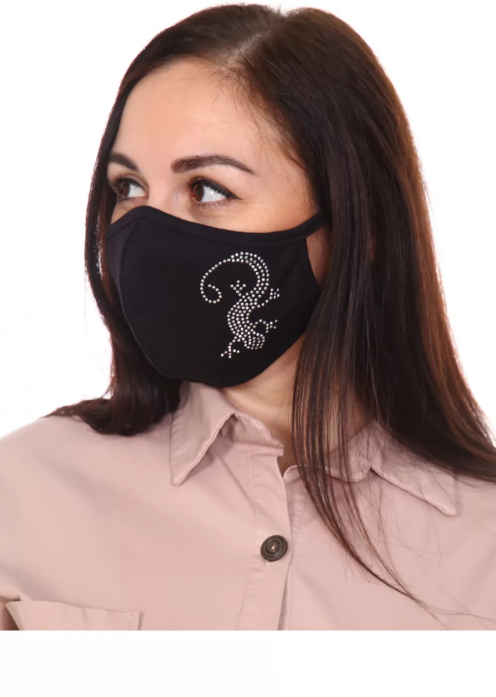 Маска понравилась. Плотная ткань. Хорошо ложится на лицо. Красивый рисунок на одной половине маски. Стразы приклеены аккуратно.