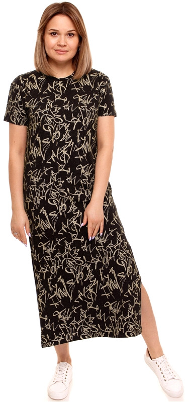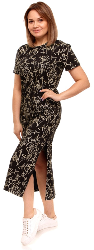 Платье хорошее, трикотаж плотненький. Рисунок золотистый. На лето очень даже ничего.