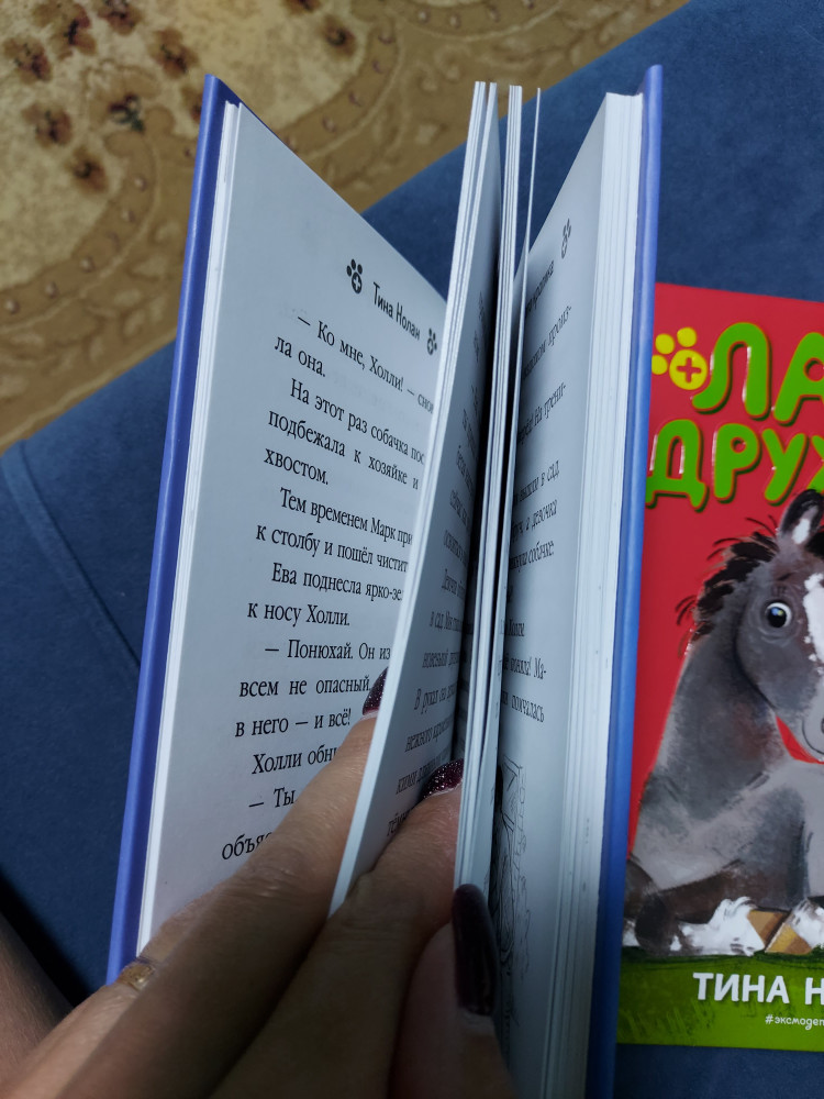 Чудесная книга! Белая бумага. На обложке глянцевый текст на матовом фоне. Крупный шрифт, моему 7-летнему ребёнку очень удобно читать! В книге ч/б иллюстрации. И сюжет хороший. Прекрасное дополнение в детскую библиотеку! Взяли три книги из серии.