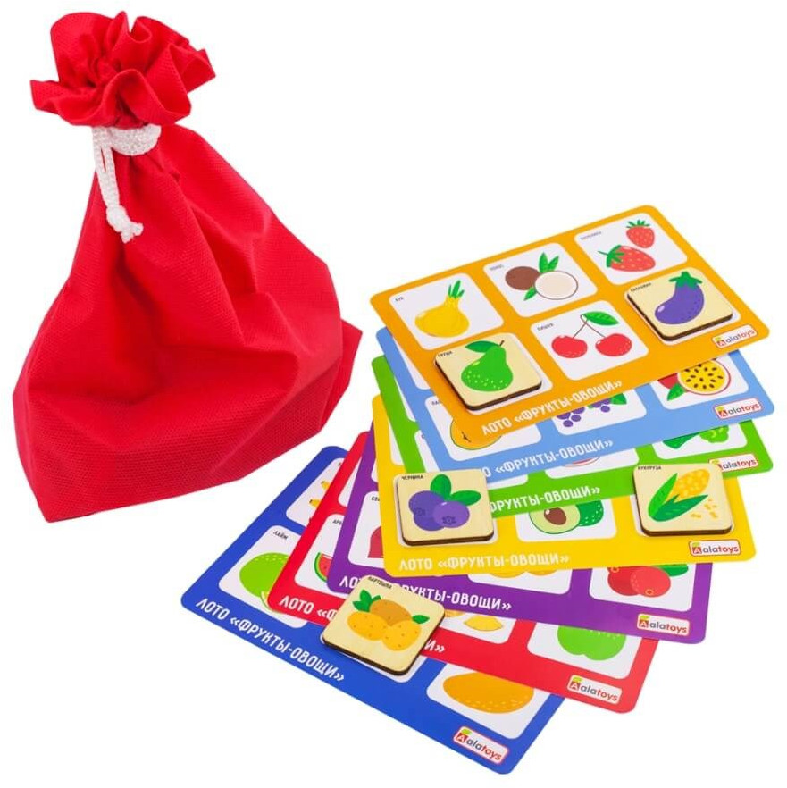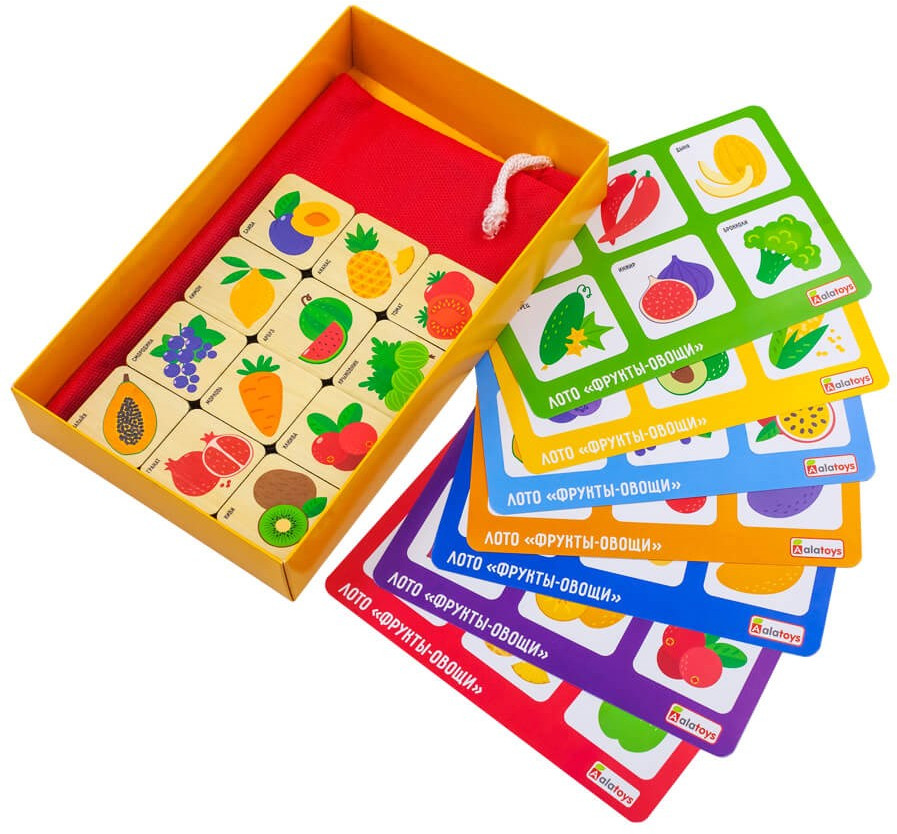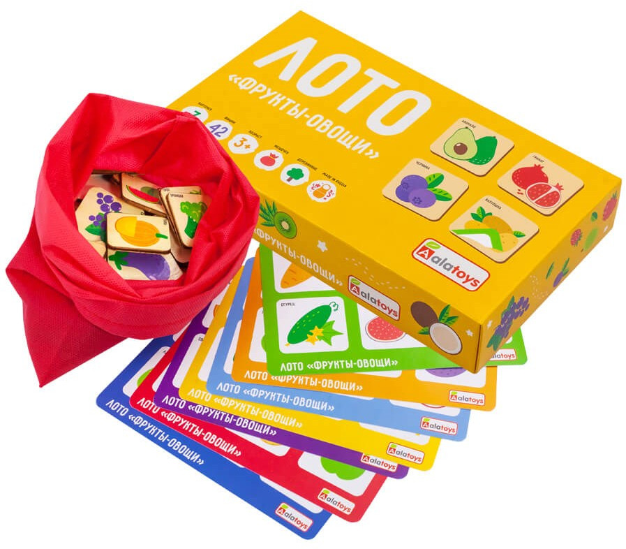 Alatoys Лото детское «Фрукты-овощи»В данный момент этот товар отсутствует в продаже. Возможно, у нас найдется аналогичный или похожий товар здесь. Детское лото «Фрукты-овощи» — настольная игра, неизменно вызывающая интерес у детей |
