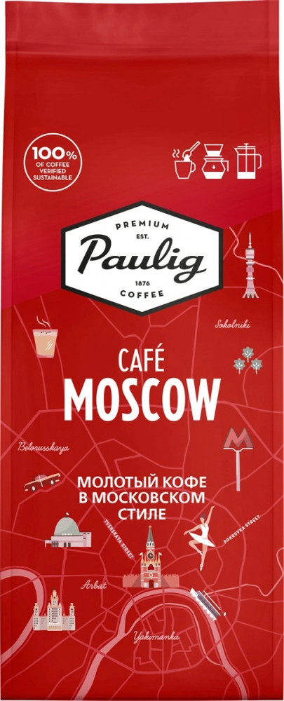 Paulig Café Moscow — кофе, на создание которого вдохновила яркая Москва — город, который всегда в движении. Темная обжарка, насыщенный вкус и умеренная горчинка делают этот бленд идеальным для раф-кофе.