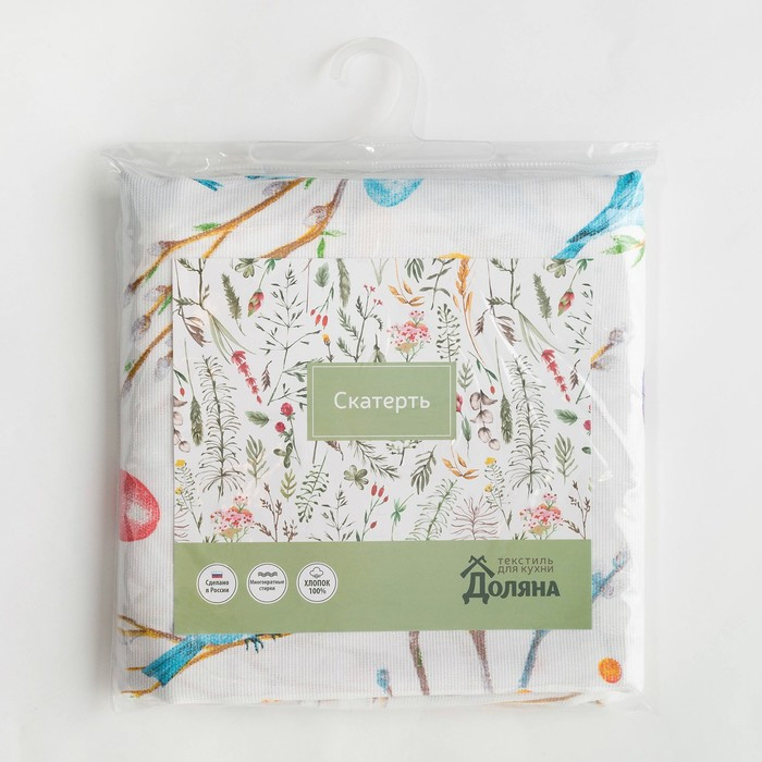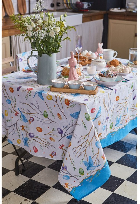 Серия: Happy Easter Как приятно собраться с семьей и друзьями за вкусным ужином. Уютная атмосфера, аппетитные блюда, красивая сервировка стола — что может быть лучше? Кстати о последнем — если вы хотите произвести на гостей неизгладимое впечатление, то без скатерти тут никак не обойтись. Ну какая сервировка без правильно и красиво оформленного стола? Скатерть станет отличным дополнением к комплекту домашнего текстиля и прекрасно подойдет для сервировки как обеденного, так и праздничного стола. |