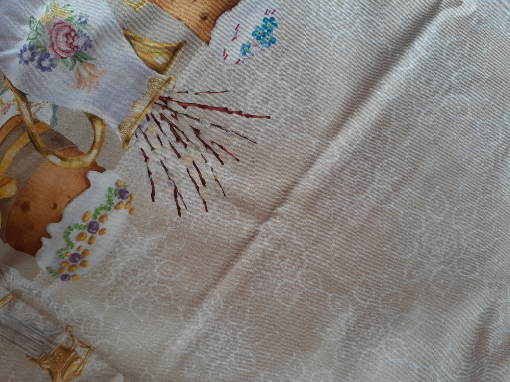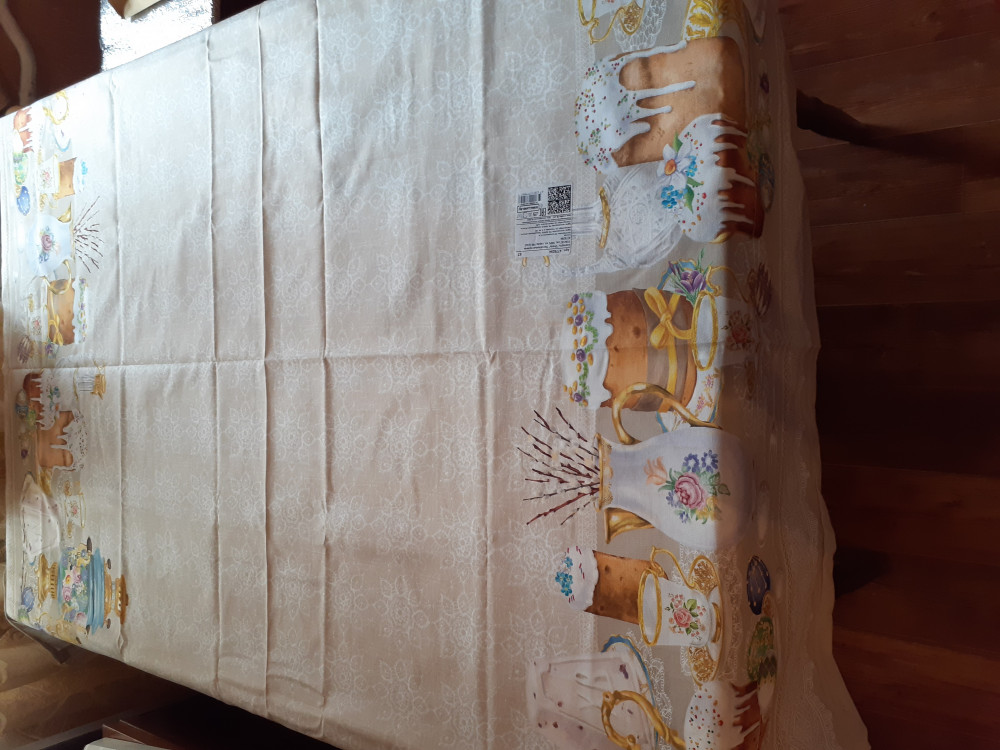 Скатерть хорошая, качество ткани, просто превосходное, но купон , к сожалению, расположен не по длине, а по ширине скатерти, не очень грамотно.
