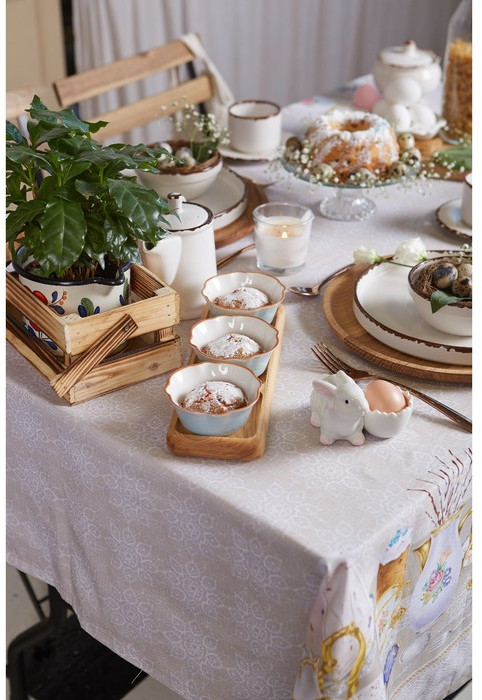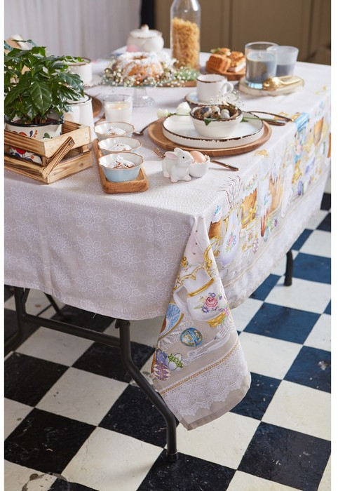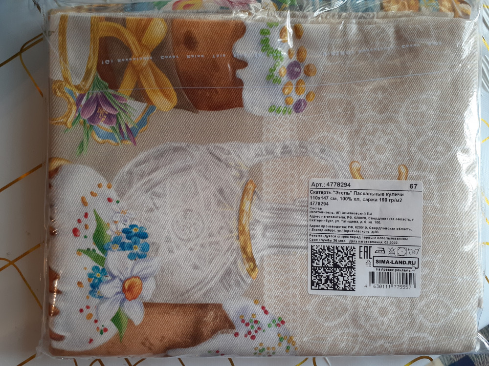 Этель Скатерть «Пасхальные куличи»-40% +229 качественная ткань праздничный рисунок расположение купона