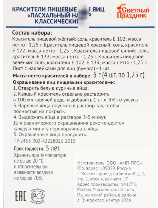 Отзывы «Красители пищевые для яиц «Пасхальный набор. Классический»»