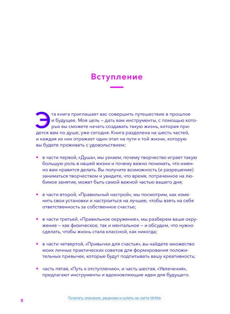 Очень довольна книгой. Читабельная, понятная, не грузит, четко ставит созвучные твоей душе цели и определяет пути к их достижению. Собственно, что и хотелось!