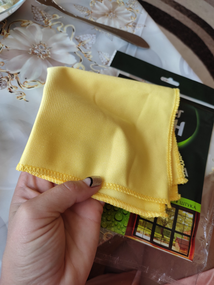 Салфетка понравилась. Не оставляет разводов. Один минус - размер салфетки. Не обратила внимания при заказе. Если зеркало протирать, то нормально. А для стекол не очень удобно. А так все нормально.