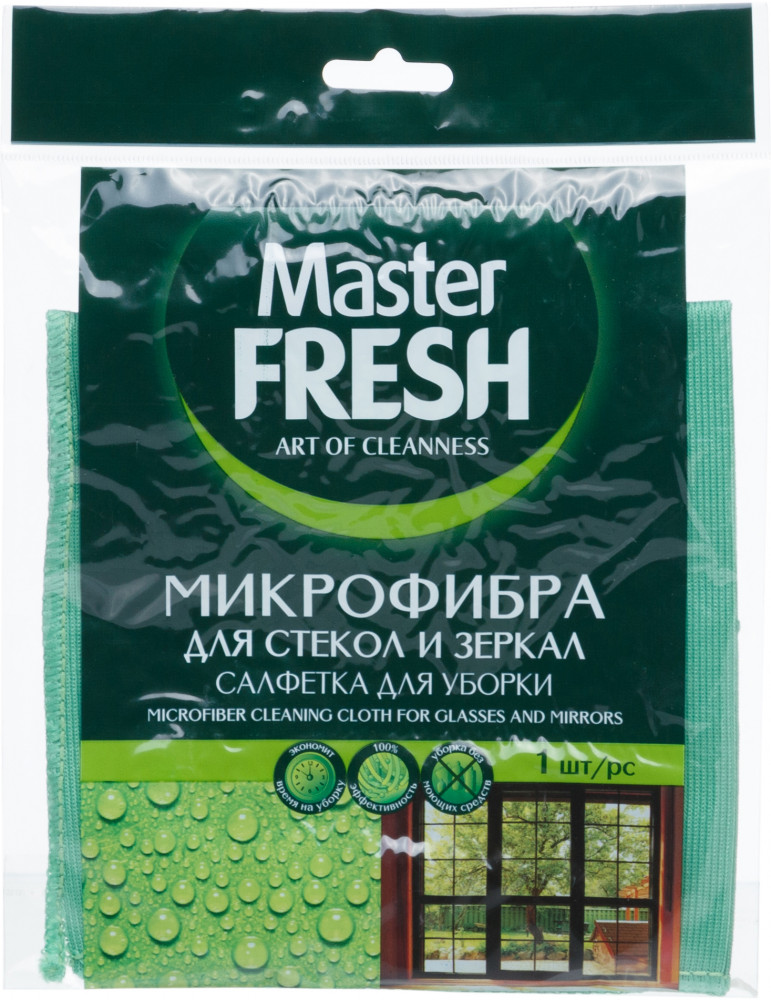 Master Fresh Салфетка для уборки стекол и зеркал-20% +13 качество без разводов для зеркал