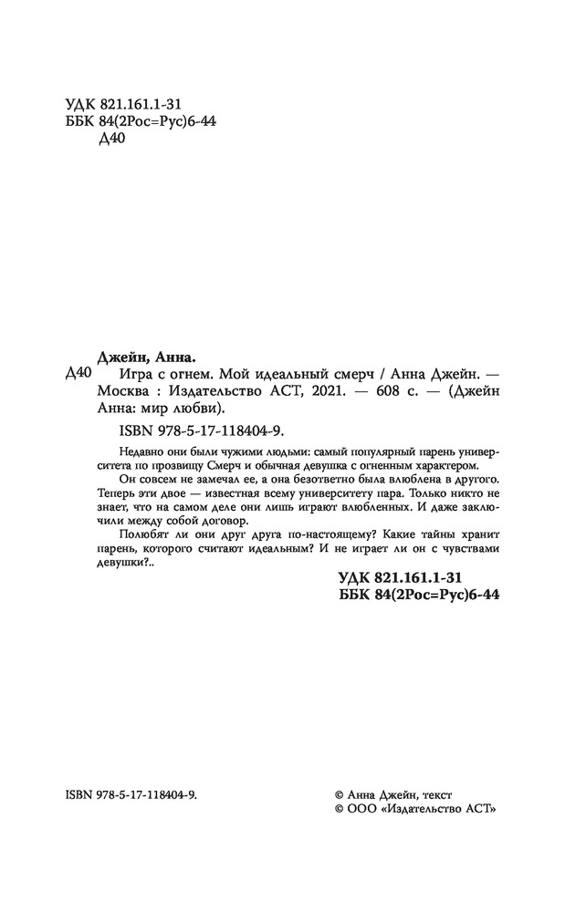 💳 Оплатить за товар можно при получении 🇰🇿 Есть бесплатная доставка по Казахстану от 1 дня 🎁 Копите бонусы с каждой покупки Серия: Джейн Анна: мир любви Недавно они были чужими людьми: самый популярный парень университета по прозвищу Смерч и обычная девушка с огненным характером. Он совсем не замечал ее, а она безответно была влюблена в другого. Теперь эти двое — известная всему университету пара. Только никто не знает, что на самом деле они лишь играют влюбленных. И даже заключили между собой договор. Полюбят ли они друг друга по-настоящему? Какие тайны хранит парень, которого считают идеальным? И не играет ли он с чувствами девушки? |