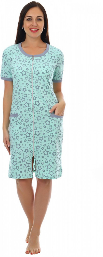 Халатик идет по размеру, чуть ниже колен (мой рост 170) , трикотаж качественный, думаю даже замок будет хорошо лежать, понравился, цена соответствует. Спасибо магазину!