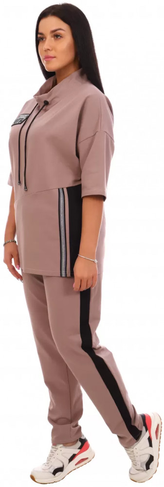 Костюм спортивный взяла для занятий физкультурой по утрам во дворе.Размер подошел, правда брюки придется подшивать.Цвет кофейный, не броский, не кричащий. Как будет вести себя после стирки - будем наблюдать.