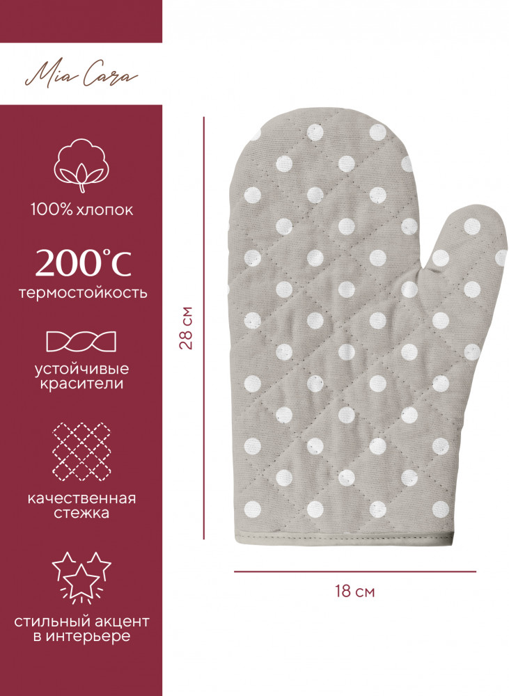 Mia Cara Прихватка кухоннаяВ данный момент этот товар отсутствует в продаже. Возможно, у нас найдется аналогичный или похожий товар здесь. Прихватки просто незаменимы на кухне. Предназначена для безопасности в процессе приготовления, когда есть риск обжечься горячей посудой, также украшает кухню, придавая ей уютный и домашний вид. Изделие оснащено специальной петелькой, за которую его можно подвесить на крючок в любом удобном для вас месте. Отличный подарок для ваших близких и друзей! |