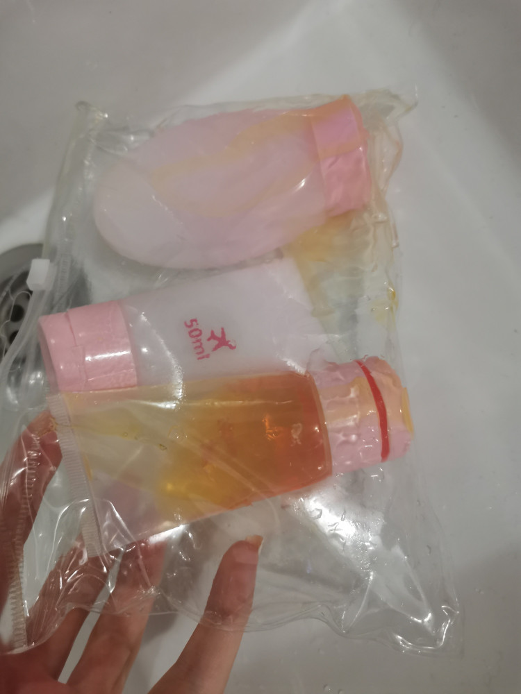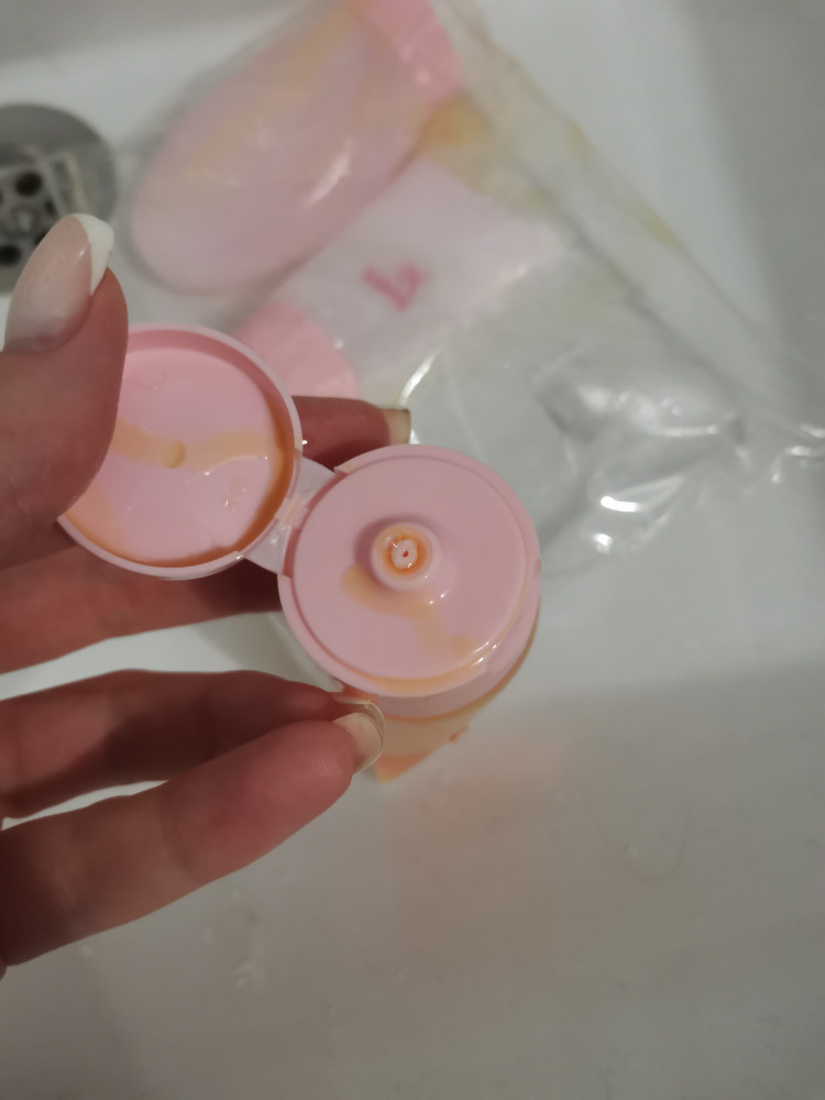 Задумка хорошая, но бутылки не выдержали и двух дней. Отломились у всех "язычки" на крышках и перестали закрываться и этого следует что стали протекать жутко, пока доехали до дома почти все вытекло в косметичку.