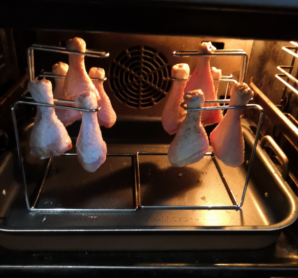 Неудобно располагать куриные ножки на средней решетке. И неудобно снимать горячие ножки со всех решеток подставки. Надо приспособится к этим неудобствам