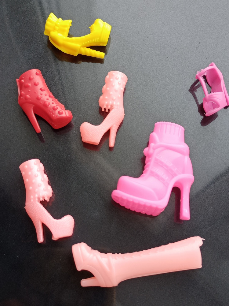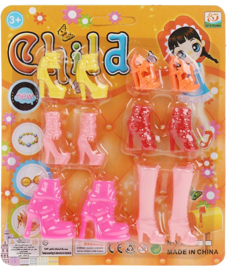 Набор пришел, как на картинке. Желтые, оранжевые и красные туфли подошли на стандартную Барби и ее аналоги, розовые сапожки и туфельки с высоким "голенищем" оказались маловаты и достались феечке с маленькой ногой. А большие розовые ботильоны подошли на куклу Монстр Хай, при этом они пластиковые и чтобы их надеть, нужно разобрать их на 2 части и снова закрепить на ноге.