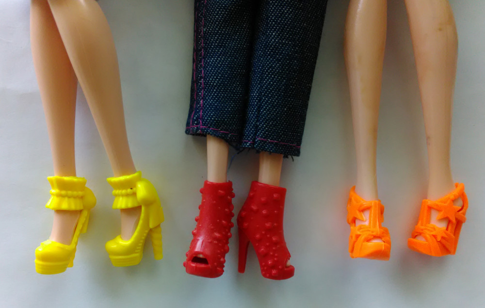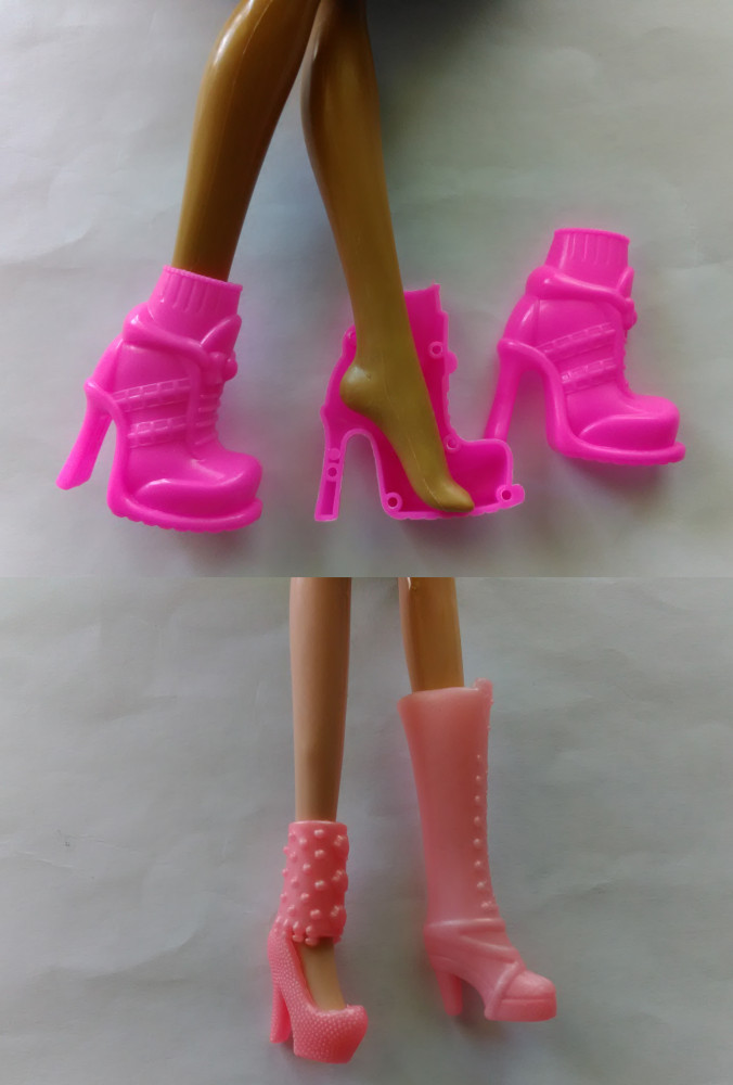 На стандартную ногу Барби (современную и старого образца) подходит только две пары, остальные для маленькой ножки.