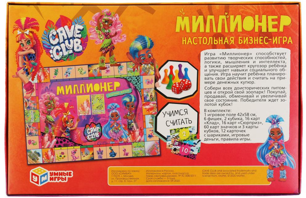 💳 Оплатить за товар можно при получении 🇰🇿 Есть бесплатная доставка по Казахстану 🎁 Копите бонусы с каждой покупки Настольная бизнес-игра «Cave Club. Миллионер» ТМ «Умные игры» — семейная экономическая игра, которая увлечёт и детей, и взрослых. Эта занимательная игра поможет преподнести ребёнку в игровой форме основы экономических знаний и обучить счёту. На её примере дети научаться обращаться с деньгами, вести расчёты и планировать свои расходы. И, конечно же, смогут повеселиться, играя вместе! |