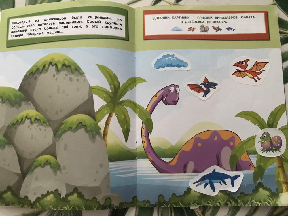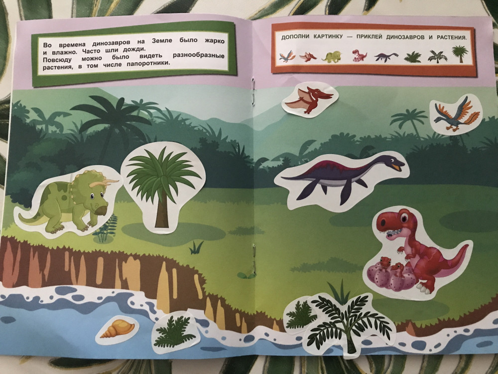 Активити с развивающими наклейками «Динозавры» разработана специально для малышей: