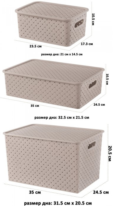 23,5 × 17,3 × 10,5 см; 35 × 24,5 × 10,5 см; 35 × 24,5 × 20,5 см