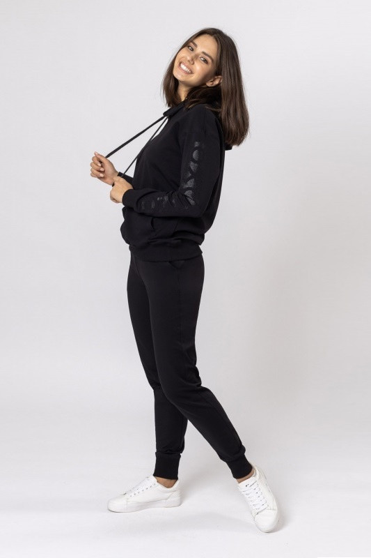 Классические джоггеры свободного кроя. Главное их преимущество — спортивный трикотажный футер из которого они сшиты. Он отличается повышенной износостойкостью, несминаемостью и устойчивостью к деформации, благодаря тому, что связан в два слоя: верхний — хлопок с эластаном, нижний — полиэстер.