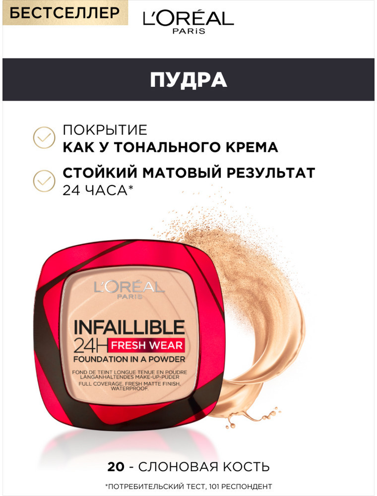 L'Oreal Paris Пудра нового поколения «Infaillible. Свежий тон», оттенок 20