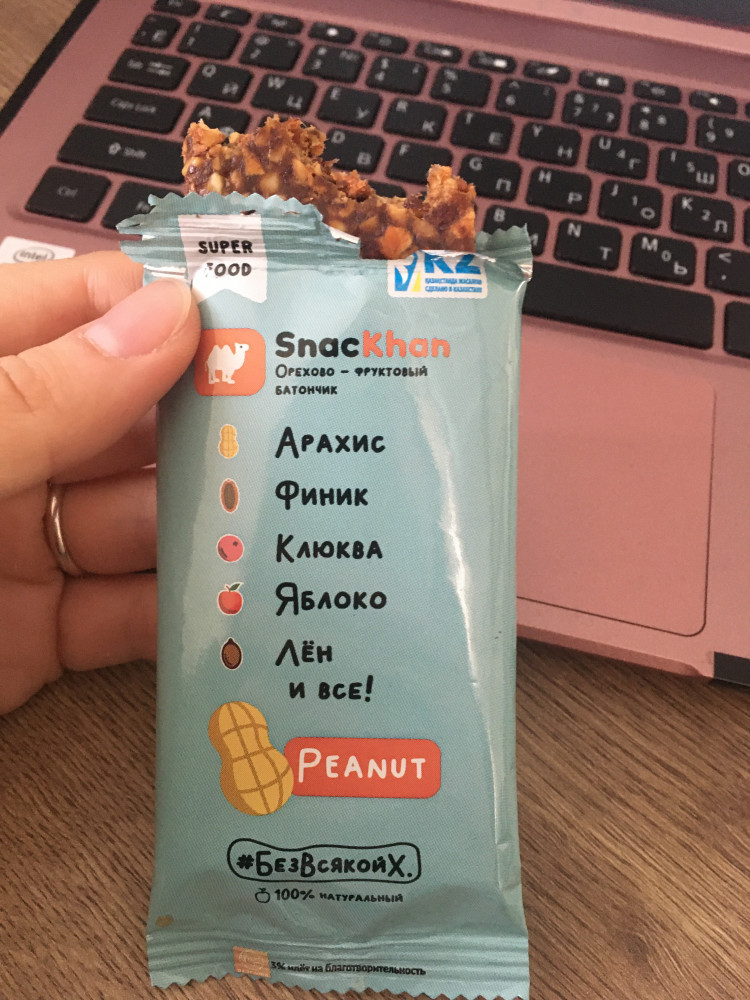 Классный батончик брала арахис. Плюсы: Содержание углеводов меньше чем у обычных батончиков. Отечественный производитель. На вкус приятный. Не прилипает к зубам. и большой плюс что 3% идут на благотворительность.