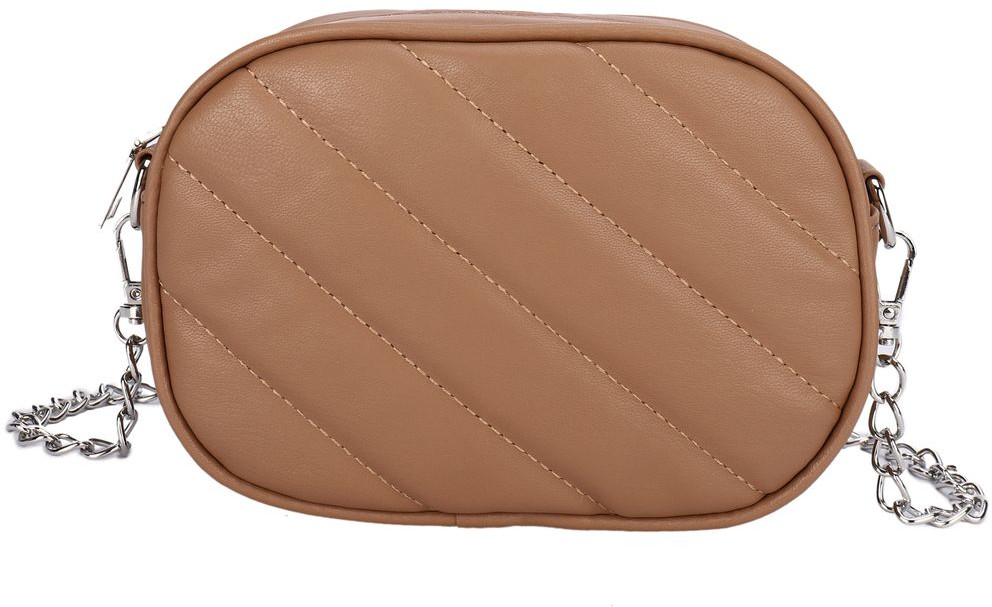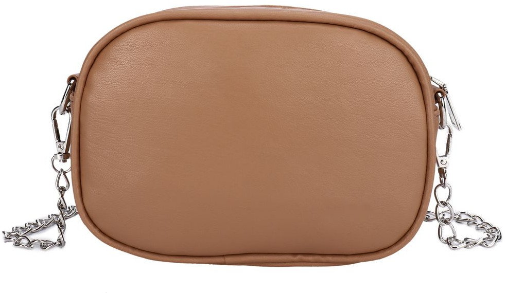 Материал кожаной женской сумки — экокожа. Она плотная, прочная, не пропускает влагу и легко чиститься — долго остается, как новая. В качестве ремня стильная стальная цепочка. С ней сумочку можно носить на плече, поясе или накинув на руку.