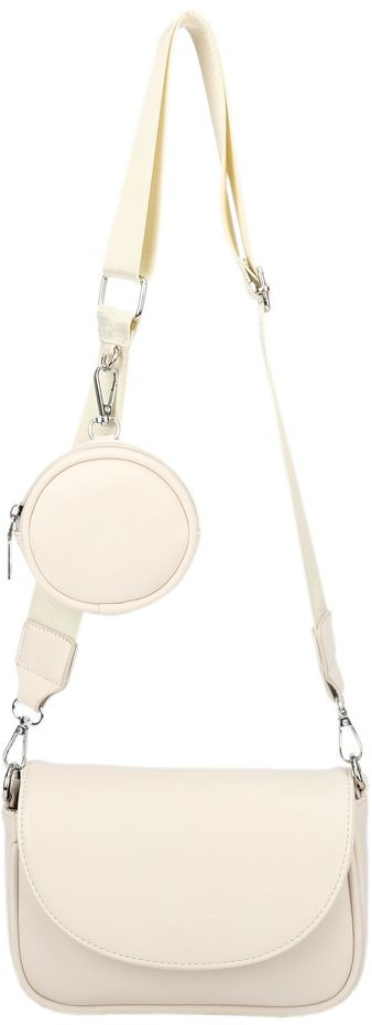 У белой сумки цвет не чистый, больше молочный. Эко-кожа мягкая, строчки идеальные, без ниток. Ремень плотный нейлон, внутри ткань тоже качественная. Отличная сумка за небольшие деньги 👍