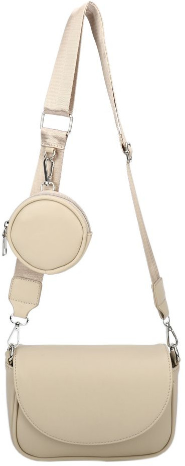 У белой сумки цвет не чистый, больше молочный. Эко-кожа мягкая, строчки идеальные, без ниток. Ремень плотный нейлон, внутри ткань тоже качественная. Отличная сумка за небольшие деньги 👍