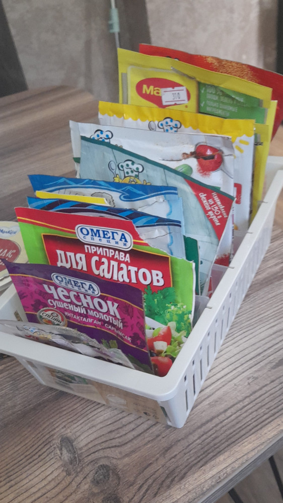 Советую кто устал от бесконечных пакетиков со специями на полке, в шкафчике. Единственное, если у вас много пакетов со специями, то лучше взять не один, а два или несколько контейнеров.