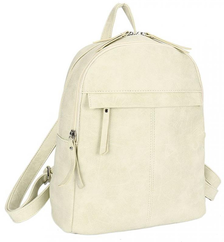 Отличный рюкзак. Материал с эффектом потёртости, смотрится не как дешевый кожзам, по размеру небольшой, но очень вместительный. Покупкой очень довольна. Спасибо flip.