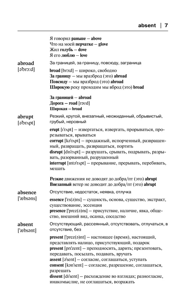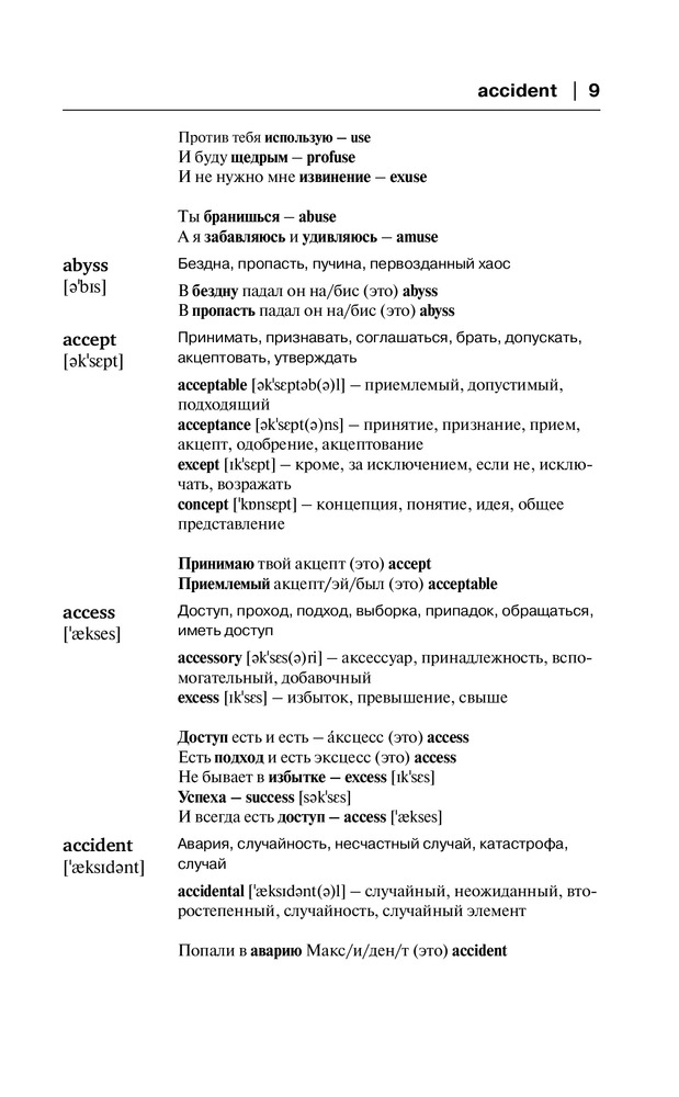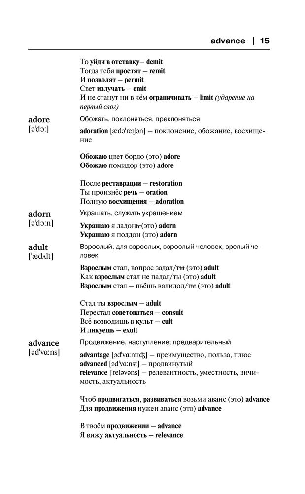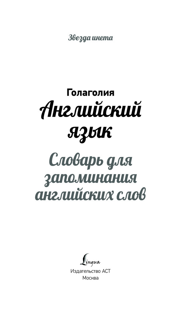 Английский язык. Словарь для запоминания английских словВ данный момент этот товар отсутствует в продаже. Возможно, у нас найдется аналогичный или похожий товар здесь. Серия: Звезда инета Данный англо-русский словарь содержит более 3000 слов с транскрипцией. Помимо перевода на русский язык словарная статья содержит также рифмовки и подборки созвучных слов. Такая мнемотехника помогает читателю запомнить новые английские слова всего за пару прочтений. |