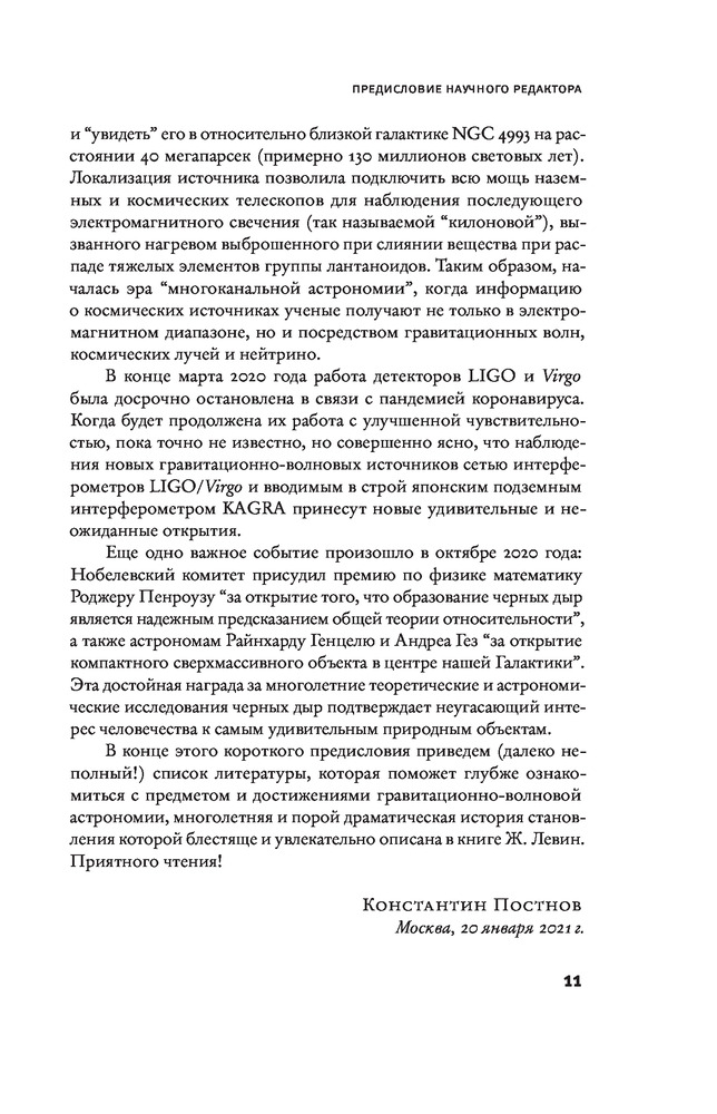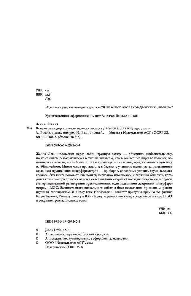 💳 Оплатить за товар можно при получении 🇰🇿 Есть бесплатная доставка по Казахстану 🎁 Копите бонусы с каждой покупки Серия: Элементы 2.0 Жанна Левин поставила перед собой трудную задачу — объяснить любознательному, но не слишком разбирающемуся в физике читателю, что такое черные дыры (о которых, конечно, все слышали, но не более того!) и гравитационные волны, предсказанные в 1916 году А. Эйнштейном. Много часов провела она в беседах с учеными, вплотную занимавшимися созданием крупнейших интерферометров — приборов, способных уловить звуки далекого космоса. Эта книга помогает нам понять, насколько извилистым и сложным был путь, который в конце концов привел к одному из величайших открытий последнего времени: к первой экспериментальной регистрации гравитационных волн наземными лазерными интерферометрами LIGO. Важность этого эпохального события была немедленно признана мировым научным сообществом, и в 2017 году Нобелевский комитет присудил премию по физике Барри Бэришу, Райнеру Вайссу и Кипу Торну за решающий вклад в создание детектора LIGO и открытие гравитационных волн. |
