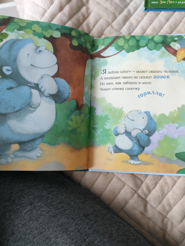 💳 Оплатить за товар можно при получении 🇰🇿 Есть бесплатная доставка по Казахстану от 1 дня 🎁 Копите бонусы с каждой покупки Серия: Лучшие истории со всего света Как животные говорят своим детёнышам «Я люблю тебя»? Горилла обнимает сыночка, гепарды мурлычут, а крокодилы — брызгаются, лежа в речке... Так по-разному! Но язык любви — един для всех, поэтому каждый детёныш чувствует и понимает, что его очень-очень любят. Обнимите своего ребёнка, скажите ему «Я люблю тебя!» и вместе прочитайте новую нежную историю от авторов бестселлера «Поцелуй меня на ночь, мама!». |