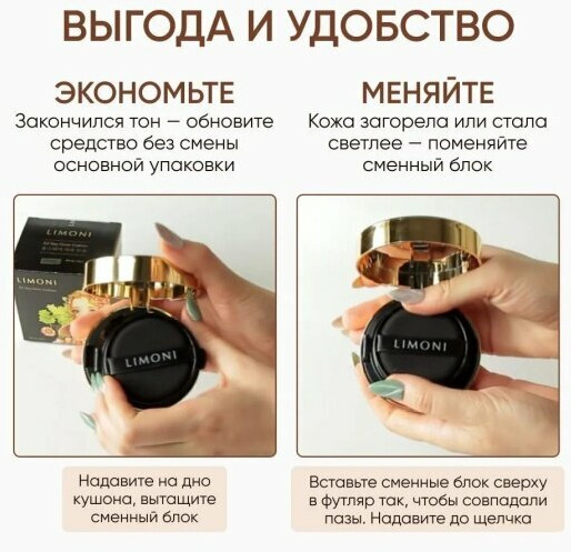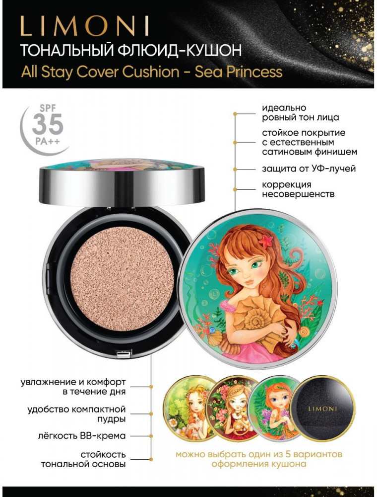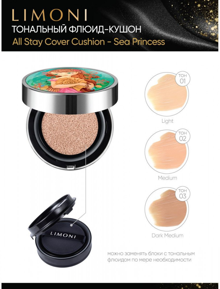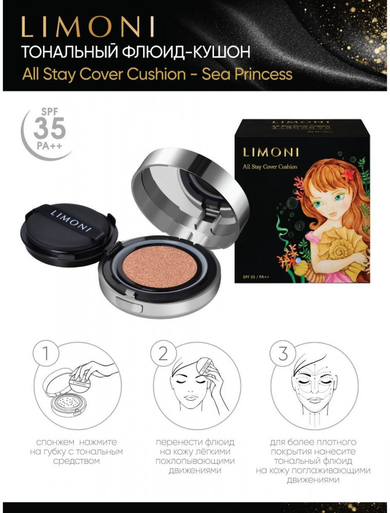 Limoni Флюид-кушон тональный «Sea Princess» SPF 35/PA++, оттенок 03 Dark Medium