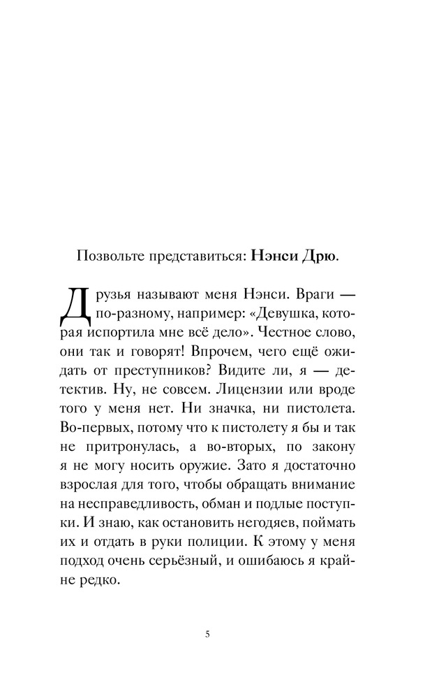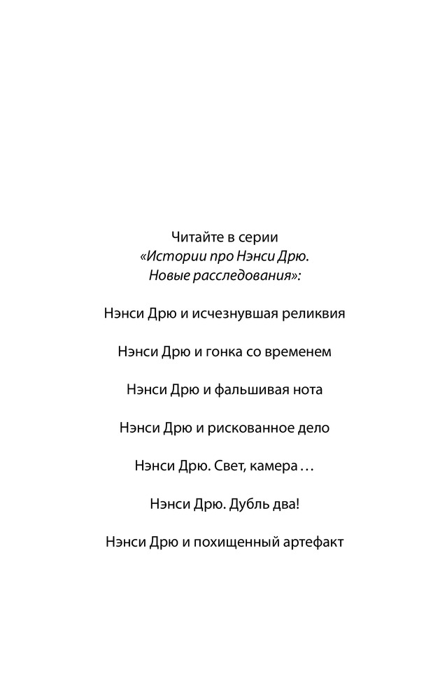 В данный момент этот товар отсутствует в продаже. Возможно, у нас найдется аналогичный или похожий товар здесь. Серия: Истории про Нэнси Дрю. Новые расследования Друзья называют меня Нэнси Дрю. Враги — по-разному, например: «Девушка, которая испортила мне все дело». Впрочем, чего еще ожидать от преступников? Видите ли, я — детектив. Ну не совсем. Значка и пистолета у меня нет. Зато я всегда обращаю внимание на несправедливость, обман и подлые поступки и знаю, как остановить негодяев.