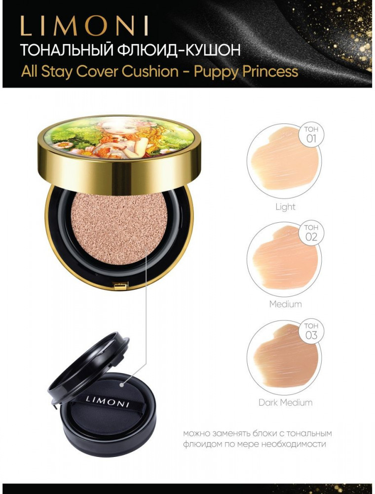 Limoni Флюид-кушон тональный «Puppy Princess» SPF 35/PA++, оттенок 01 Light