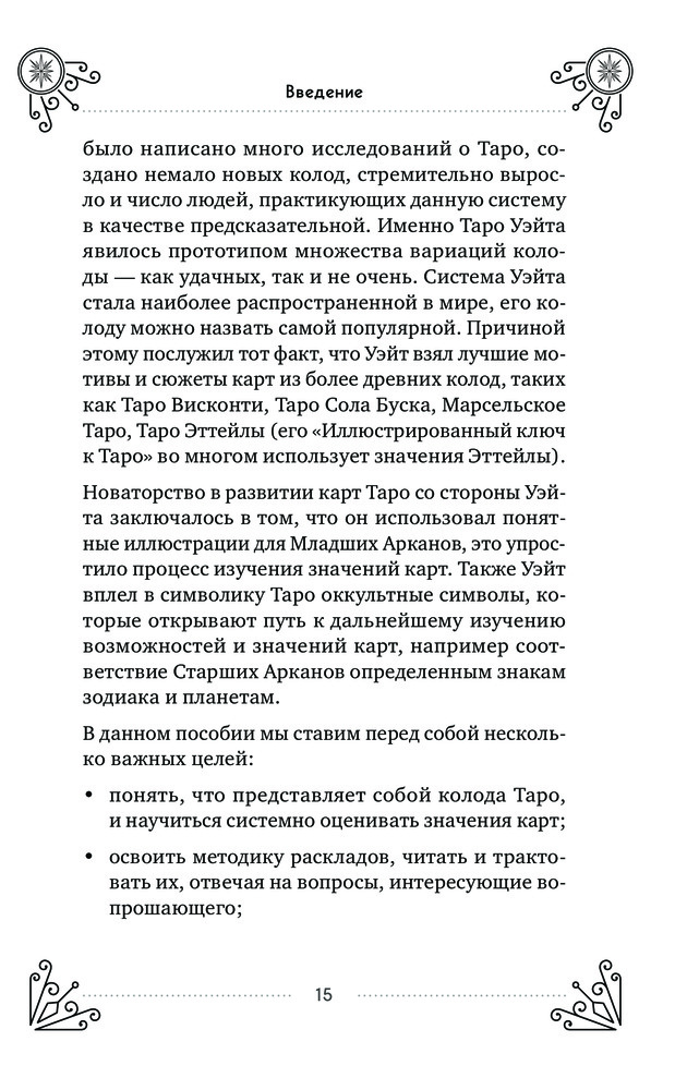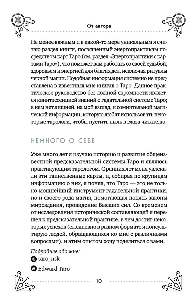 Замечательная книга, отличный справочник по Таро. Идеально подойдёт для новичков. Написано понятно, без лишней информации, кратко даны значения каждой карты в различных сферах гадания. Приведены расклады с подробным обзором и примерами из практики. Есть раздел по магии Таро. Твёрдый переплет прослужит долго. Однозначно рекомендую к приобретению.