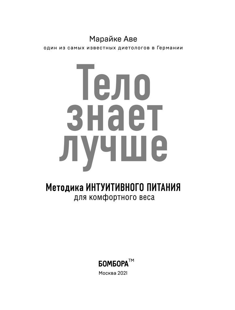 Тело знает лучше. Методика интуитивного питания для комфортного весаВ данный момент этот товар отсутствует в продаже. Возможно, у нас найдется аналогичный или похожий товар здесь. Серия: Модные диеты Считается, что красивый человек должен быть худым, поэтому люди сидят на диетах, срываются, снова набирают вес, корят себя за отсутствие силы воли и ненавидят свое тело. Известный немецкий диетолог Марайке Аве выступает против диет и предлагает читателям попробовать интуитивное питание. |