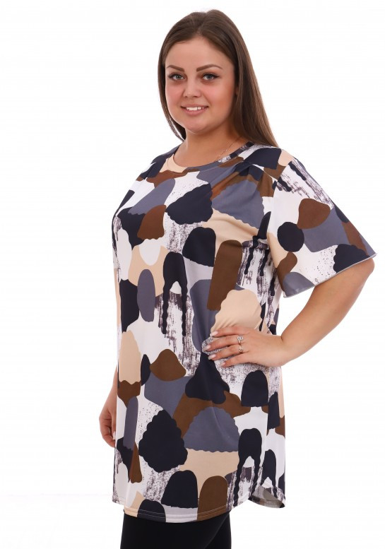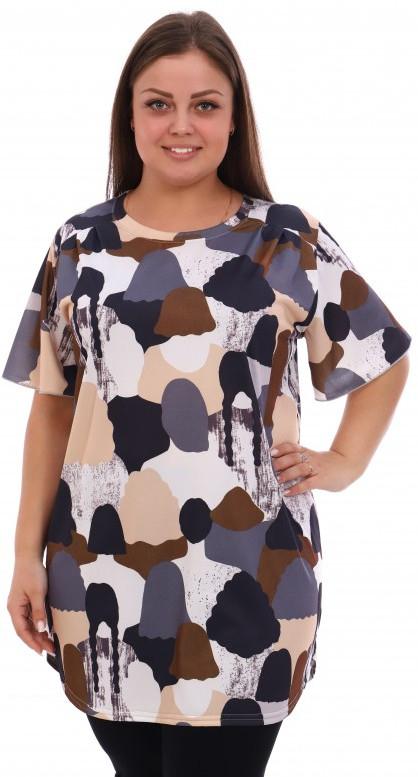 От туники я в восторге, нигде не обтягивает. Специально брала размер побольше свободная как сейчас модно оверсайз. Длинна нормальная все прикрывает. На лето вообще прекрасно.