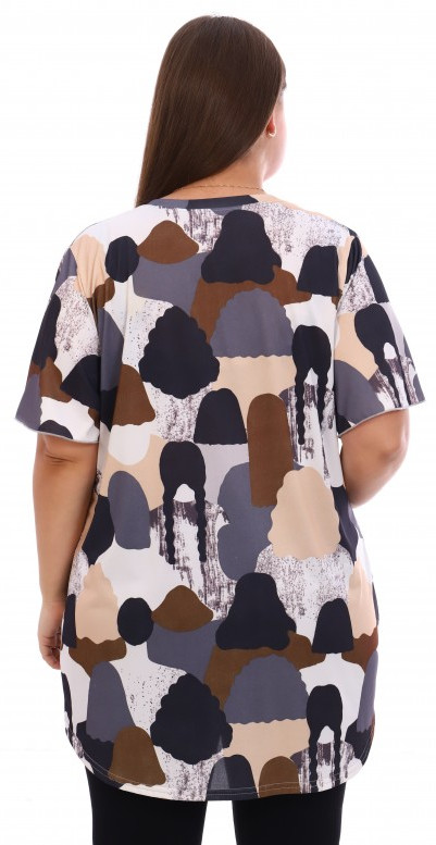 От туники я в восторге, нигде не обтягивает. Специально брала размер побольше свободная как сейчас модно оверсайз. Длинна нормальная все прикрывает. На лето вообще прекрасно.
