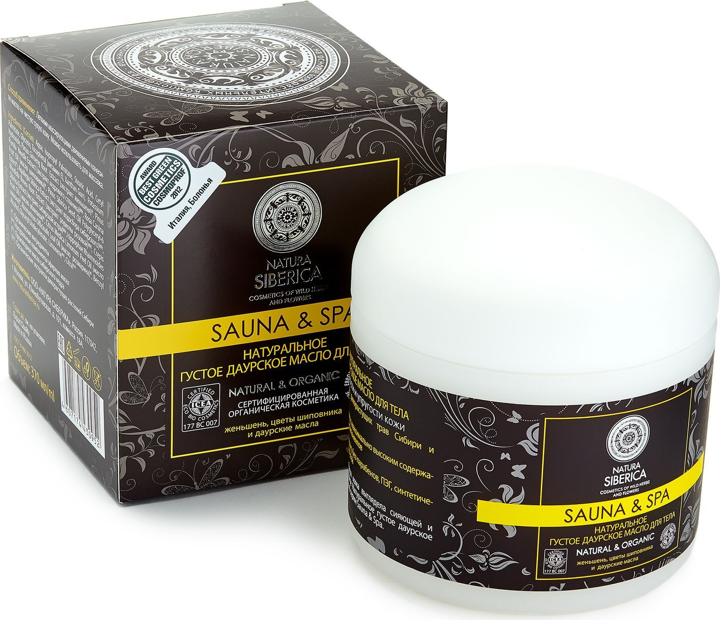 Natura Siberica Масло для тела густое сибирскоеВ данный момент этот товар отсутствует в продаже. Возможно, у нас найдется аналогичный или похожий товар здесь. Серия: Sauna & Spa Содержащиеся в женьшене жирные кислоты и дубильные вещества способствуют повышению тонуса кожи, стимулируют процессы обновления клеток. Экстракт шиповника, благодаря повышенному содержанию аскорбиновой кислоты и витаминов, способствует синтезу коллагена, активизирует обменные процессы в клетках и повышает иммунитет кожи. Эфирные масла розмарина и лимона обладают тонизирующим ароматерапевтическим эффектом. После применения даурского масла для тела Natura Siberica, кожа выглядит ухоженной и сияющей. |