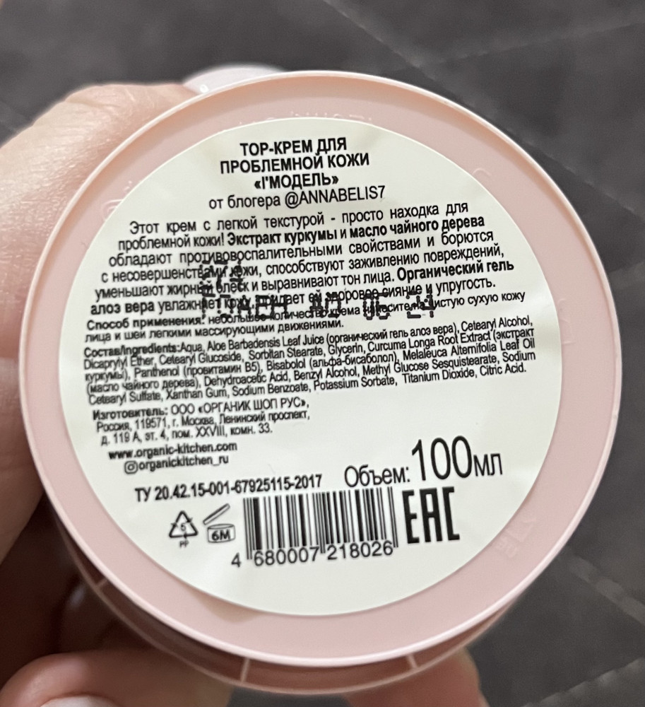 Крем понравился, экономичный, что бы на нести на все лицо достаточно чуть чуть крема. Быстро впитывается, запах травянистый, но не противный. На счёт помогает или нет от прыщей, пока не скажу. Нанесла всего два раза, но думаю буду заказывать ещё, так как нравиться состав крема, самое то для жирной кожи с высыпаниями и цена👍🏻