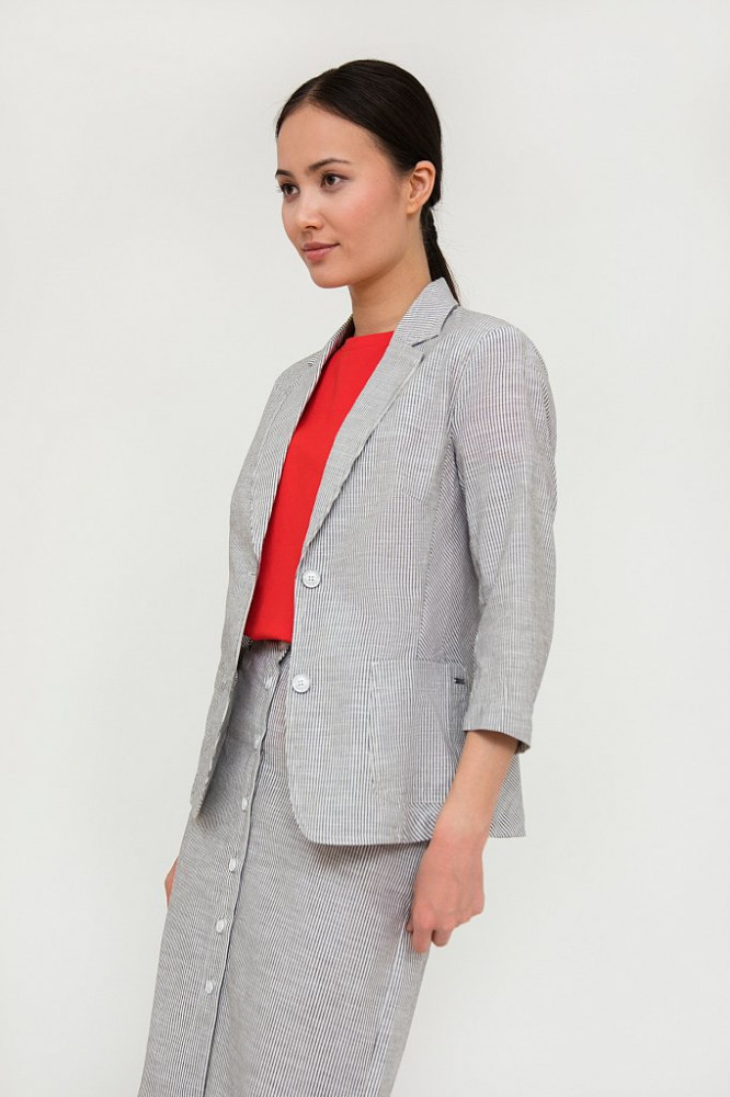 Легкий жакет, ткань очень тонкая, скорее рубашечного типа, но на лето как раз хорошо, я взяла на размер больше, так как не планирую его носить костюмом, для меня лучше его сочетать с летними брюками или джинсовыми юбками в накидку на майку или футболку)