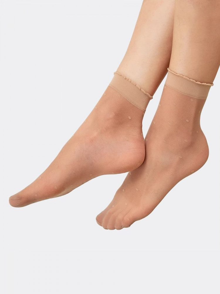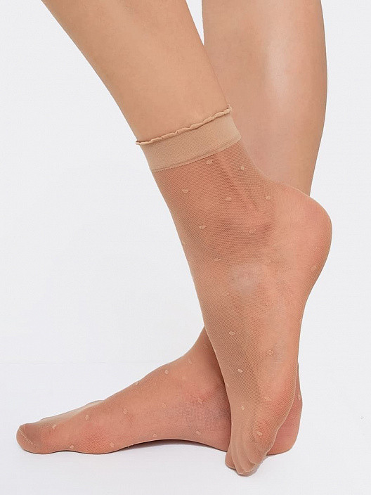 Носочки очень очень хорошие. По сути не ношу синтетику, не ношу обувь на босу ногу, но нужны были носочки тоненькие, (по состоянию здоровья( диабет) ни в коем случае нельзя, что бы травмировались ступни, мозоли чреваты негативными последствиями). Так вот, носки такие комфортные, что слов нет. Практически матовые, блеск не большой. Не колются, нет сдавливания нигде и никак. У меня ноги отекают при длительной ходьбе, но в этих носках не было никакого дискомфорта. К тому же очень красиво смотрятся. Точечки на носках едва заметны. Носки довольно плотные, полиамид чУдный материал, явно видно, что носится будут долго. По крайней мере одевала уже раз пять и ни одной затяжки. Однозначно рекомендую к покупке.