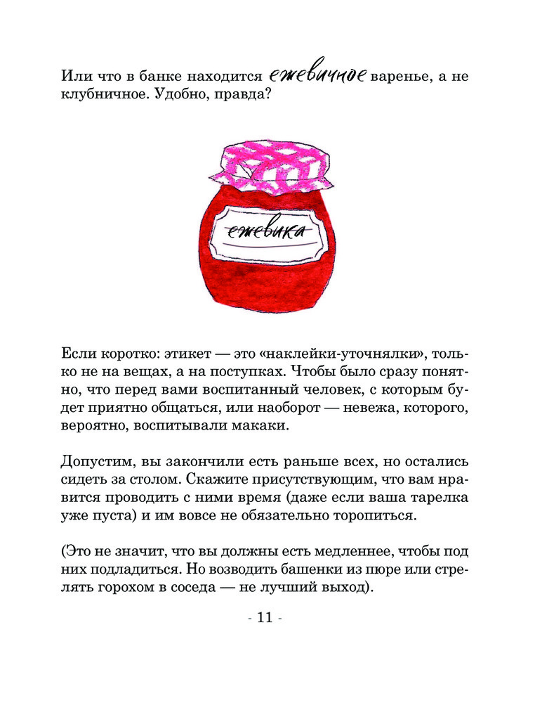 • широкий охват тем этикета — от поведения за столом до соблюдения личных границ;